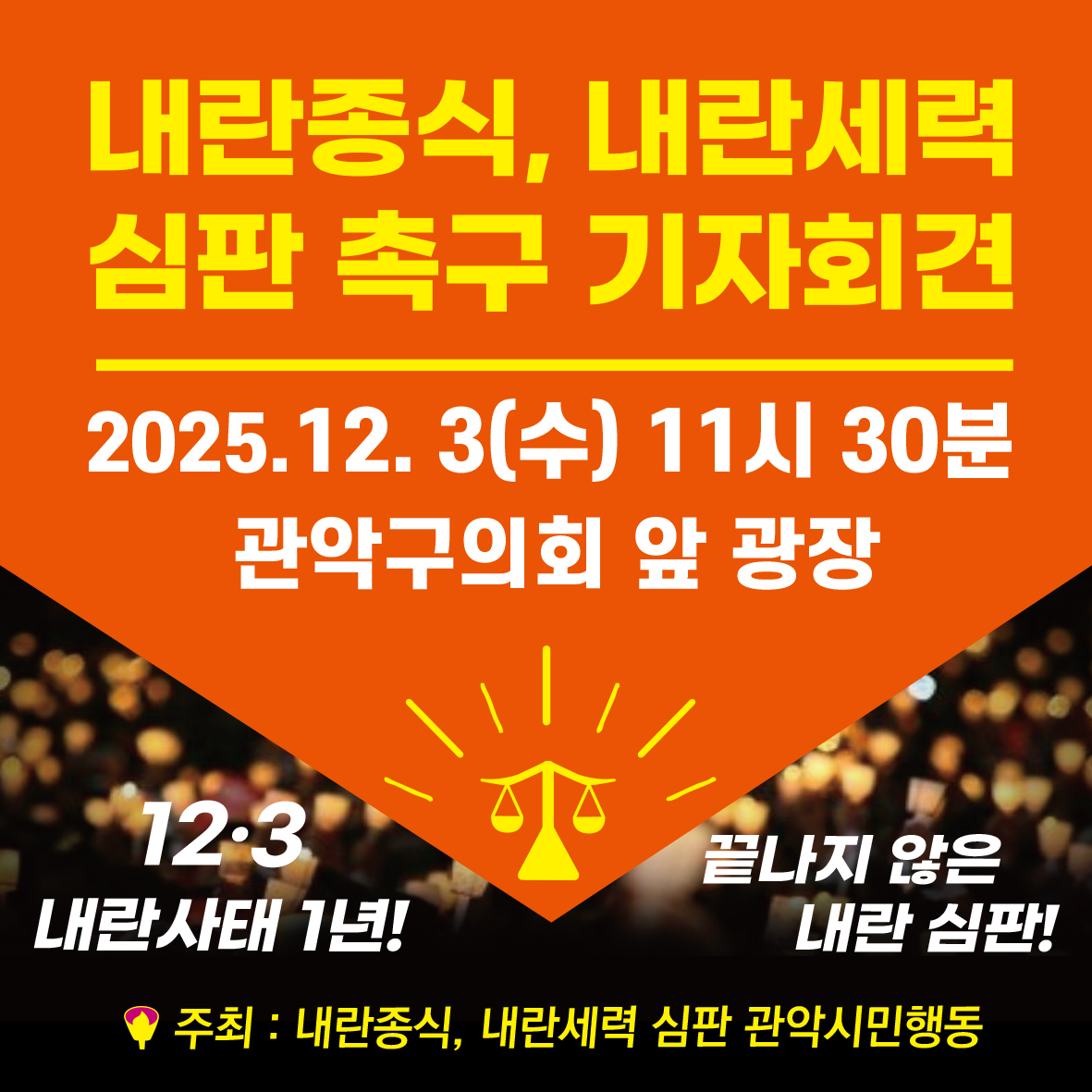 ✅ 2024년 12월3일, 1년 전 오늘! 계엄선포로 온 국민을 잠 못 들게 한 잊을 수 없는 날입니다. 최근 관악구의회 최인호 의원이 비상계엄은 고도의 통치행위라며 옹호 발언을 하였습니다. 12.3 비상계엄 1년을 맞이하여 12월3일, 관악구의회 앞에서 기자회견이 진행되오니 많은 관심과 참여를 부탁드립니다.